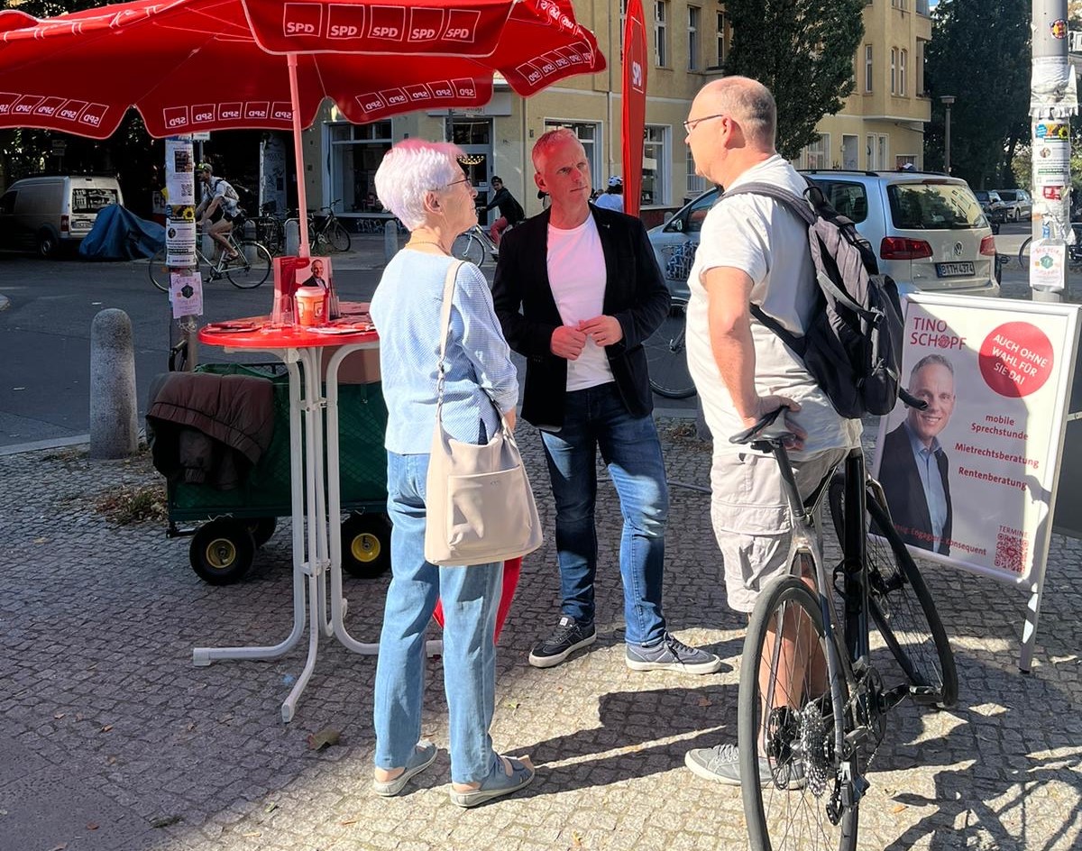 Bei strahlendem Sonnenschein fand am Samstagvormittag meine Bürgersprechstunde am Rande des Wochenmarktes am Arnswalder Platz statt. Auch dieses Mal gab es einen guten Austausch mit Anwohnenden. Im Anschluss besuchte ich – gleich nebenan – das Jubiläumsgärtnern der Gärtner-Initiative. Bereits seit zwölf Jahren sind die Freiwilligen engagiert dabei, den Arnswalder Platz zu pflegen und sauber zu halten.