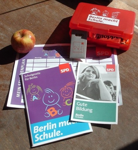 Da dieser Tag ja nicht nur für die Kinder ein besonderer ist, gab es auch für alle Eltern von uns nützliche Informationen. So hoffen wir mit dem Berliner Schulgesetz, einer informativen Broschüre zur sozialdemokratischen Bildungspolitik und einer roten Rose für einen schönen Tag und einen guten Start gesorgt zu haben.