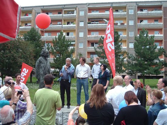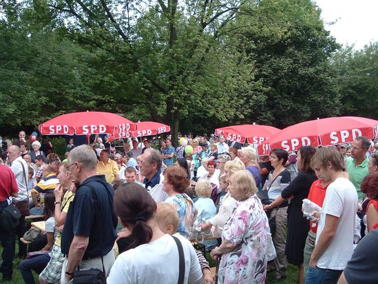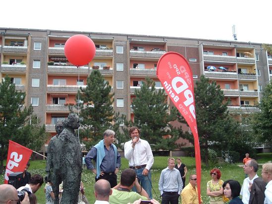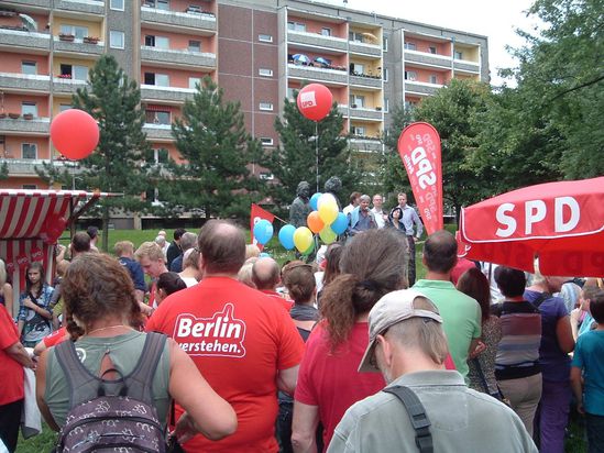 Der unbestrittene Höhepunkt des Nachmittages war sicherlich der Auftritt des Regierenden Bürgermeisters Klaus Wowereit. Nach einem Kiezspaziergang mit den SPD-Kandidaten von der Seniorenstiftung Prenzlauer Berg bis zum Fest im Einsteinpark wurde er begeistert empfangen. Einer kurzen Ansprache zu den Schwerpunkten sozialdemokratischer Politik in den kommenden Jahren, folgten Präsente und Autogramme für zahlreiche Festgäste. Natürlich stand auch Klaus Wowereit für Fragen und Diskussionen zur Verfügung, insbesondere zu den wichtigsten Themen die die Stadt im Moment beschäftigen. Dazu zählen vor allem die Eröffnung des neuen Flughafens 2012, die Schaffung neuer Arbeitsplätze und die Stärkung des sicheren, toleranten Miteinanders in unserer Stadt.